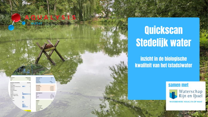 In opdracht van Waterschap Rijn en IJssel voert Aqualysis al enkele jaren Quickscans Stedelijk Water uit. Het doel hiervan is snel inzicht te krijgen in de biologische kwaliteit van het (stads) water en de resultaten hiervan te gebruiken voor beleidskeuzes en beheersmaatregelen.